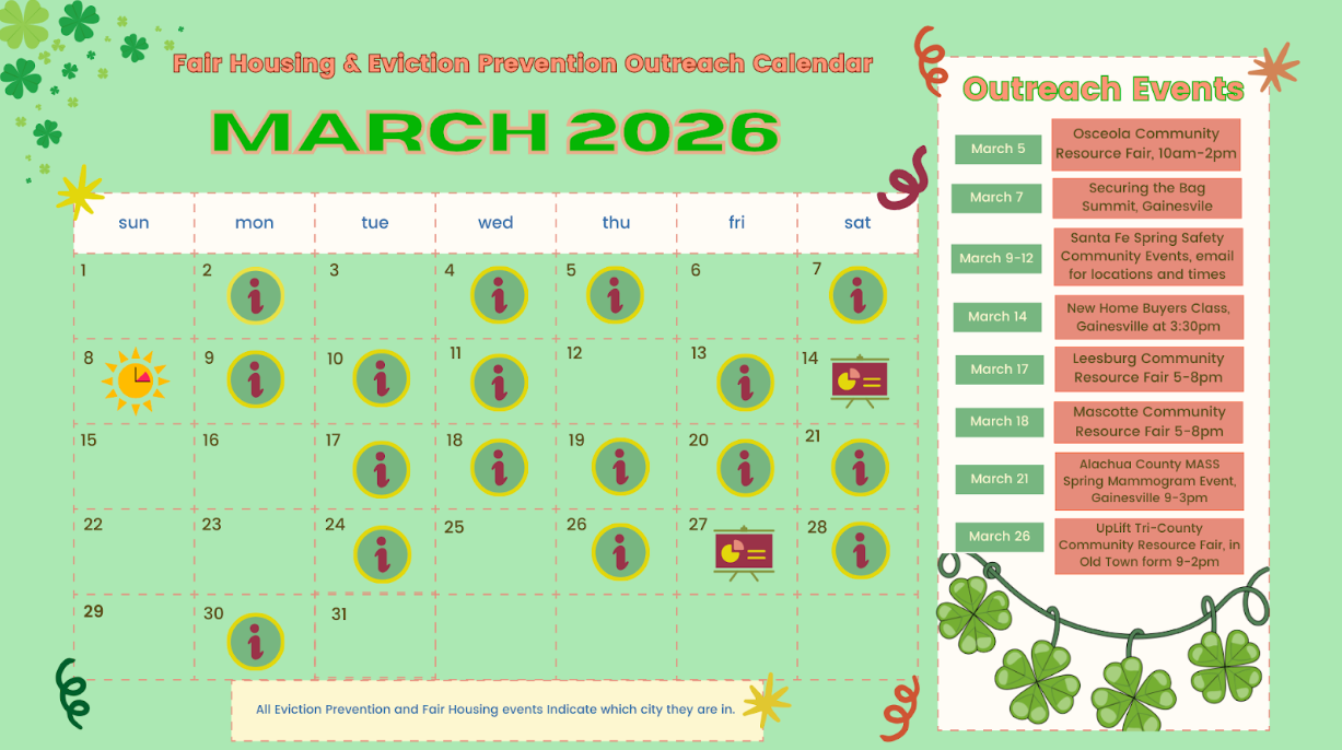 Thank you to the Alachua County Library System for inviting the Fair Housing and Eviction Prevention teams to present at the Alachua County Correctional Facility. During this presentation, we shared information about eviction prevention resources and fair housing protections with incarcerated individuals. Ensuring that everyone has access to information about their legal rights is an important step in supporting individuals, their families, and successful reentry into the community.